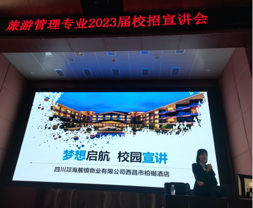按照西昌民族幼儿师范高等专科学校职业教育系旅游管理专业就业安排,2022年11月,旅游管理专业在学术报告A厅举行了校园招聘专场宣讲会。参与本次宣讲会的单位有成都锦江宾馆、峨眉山恒邦艾美度假酒店、四川邛海麓镇物业有限公司西昌市柏樾酒店、西昌邛海宾馆酒店管理有限公司、西昌豪生酒店管理有限公司、将军会馆酒店等。职教系李刚书记、旅游管理专业负责人徐婷婷、教研室教师谭月萍、熊莲及旅游管理专业20级全体学生出席。