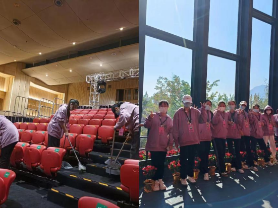 场地部志愿者进行演出场地布置