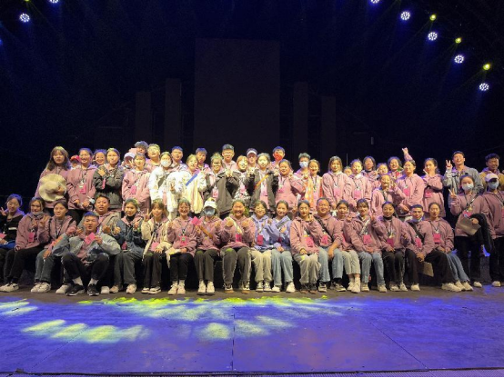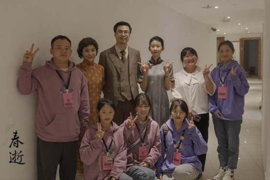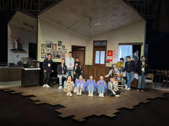演出部志愿者与演员在后台进行合照留影