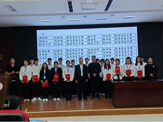 接下来吉布史呷老师宣读职业教育系2022~2023学年学生会各部门干部、干事的聘书申领代表名单,领导和老师为他们颁发聘书,接着吉布史呷老师宣读并表彰了职业教育系2022~2022学年学生会优秀学生干部和优秀干事,极大的调动了同学们的积极性。