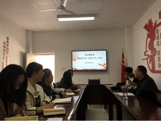 2024年3月6日下午14:30,我系在3215会议室召开了春季学期第二次辅导员工作例会,职业教育系党总支副书记李刚就开学期间学生管理以及校园安全等方面的工作做了安排部署。