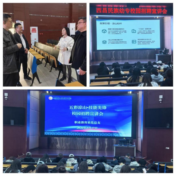 为进一步落实23、24级学生就业(实习)工作,搭建精准对接平台。由职业教育系党总支“西昌民族幼专校园招聘宣讲会”,在我校学术报告A厅成功举办。职业教育系相关专业190余人参加了活动。随着旅游市场回暖,景区直通车作为连接交通枢纽与核心景区的关键环节,对具备良好服务意识、专业操作技能及旅游管理知识的高素质技能型人才需求日益旺盛。我系抓住这一契机,主动对接本地优质旅游企业,让优质岗位“走进来”,让优秀人才“送出去”。