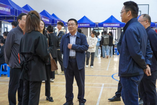 校党委书记卢立武、校长赵波、副校长王晓东等领导来到双选会现场指导,并与用人单位代表深入交流,对用人单位对学校学生就业工作和人才培养的大力支持表示感谢,并就用人单位人才需求和对学校人才培养的意见建议进行了沟通交流。