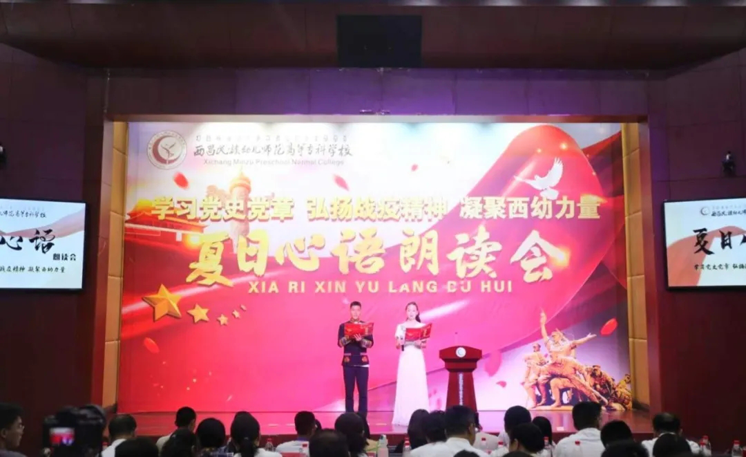 2020年7月14日职业教育系组织学生积极参加由西昌民族幼儿师范高等专科学校主办的“为学习党史党章、弘扬战疫精神、凝聚西幼力量”的夏日心语朗读会。
