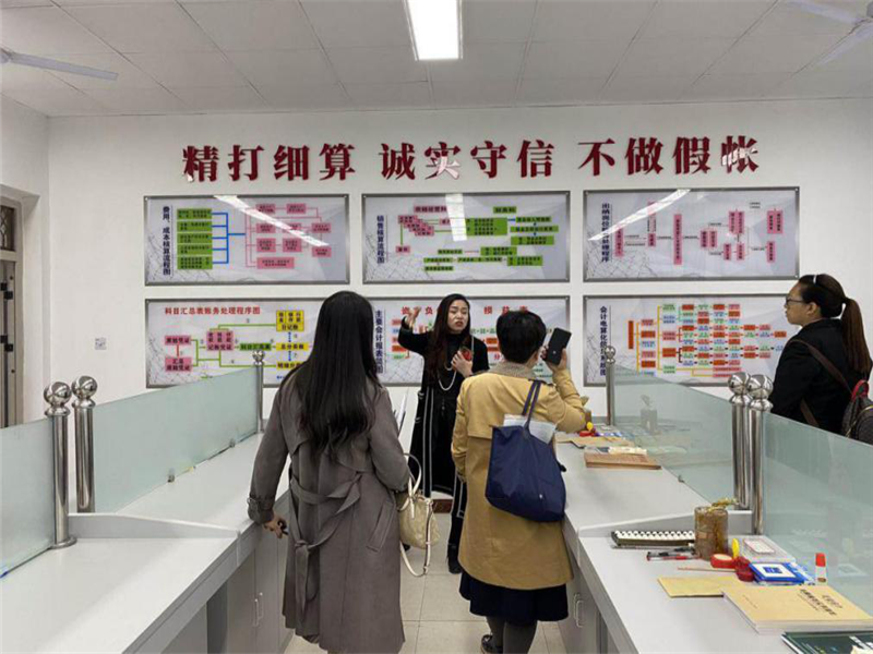 2020年10月12日,西南石油大学经济管理学院吴晓明副院长、吕南教授一行到西昌民族幼专公共管理系开展对口支援帮扶工作。吴院长、吕教授在公管系曾艳主任、张国洁老师和学工部袁唯人副部长的陪同下先后参观了会计专业电算化实训室和手工实训室。当场指导会计实训室建设,并对实训室建设存在的问题提出宝贵的意见和建议