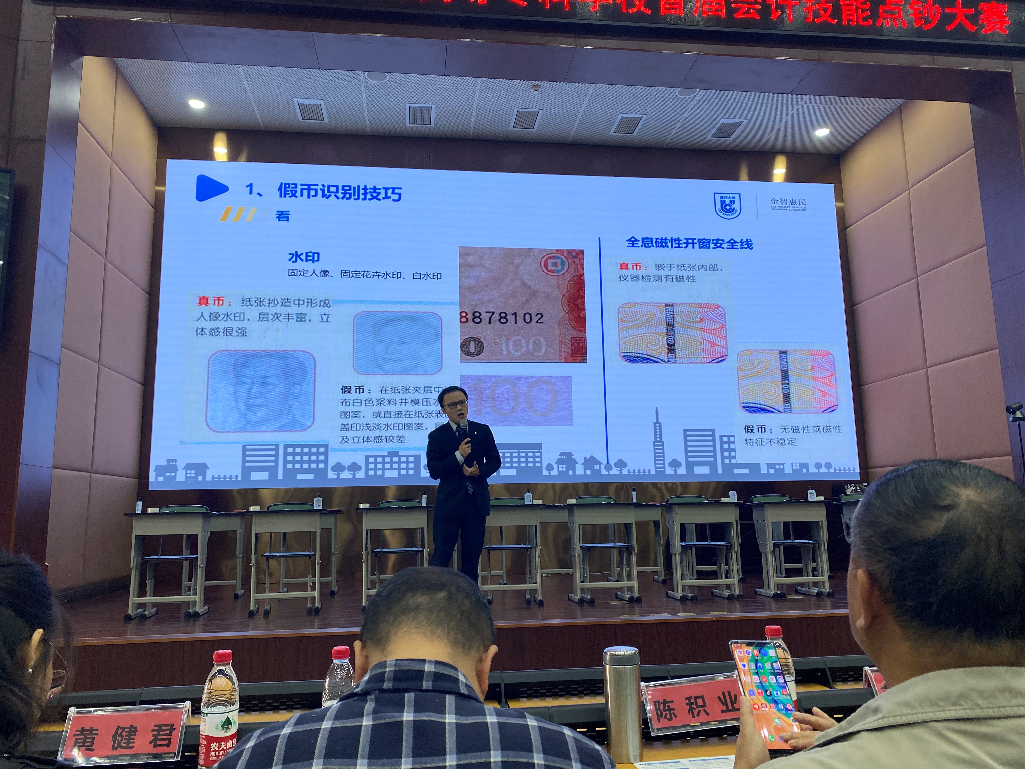 复赛结束后,由建行工作人员张弛为在场师生作了货币反假小技巧及防范电信诈骗专题讲解。让在场师生更直观清楚的了解货币真假鉴定及如何鉴别电信诈骗相关知识。