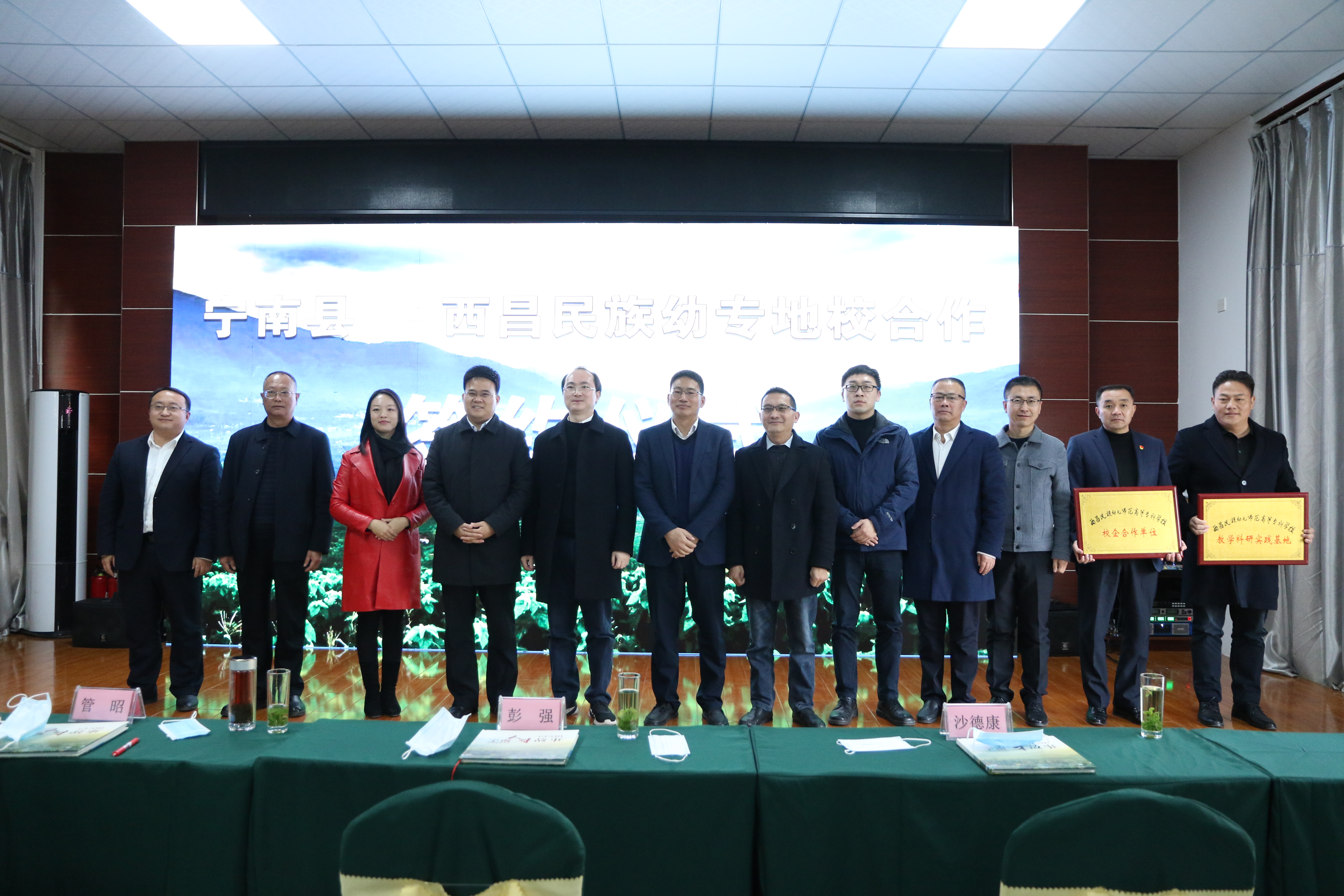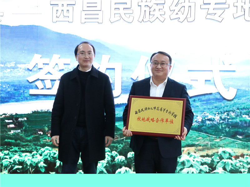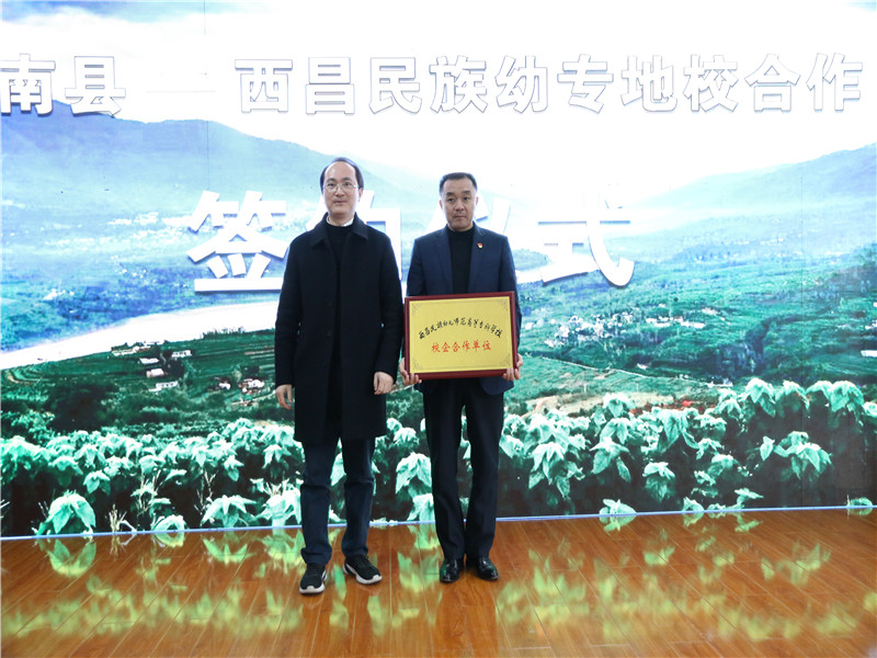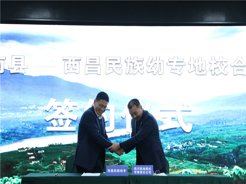 同时,学校还与四川凯地里拉有限责任公司、宁南县农文旅投资发展有限责任公司签订校企合作框架协议,进一步深化产教融合,促进教育链、人才链与产业链、创新链有机衔接,推动教育优先发展、人才引领发展、产业创新发展、经济高质量发展相互贯通、相互协同、相互促进。会议上宁南县委书记管昭作了致辞,与会人员观看了宁南县人才工作宣传片;省委组织部彭强调研员分别为西昌民族幼专和宁南县人民政府、四川凯地里拉有限责任公司、宁南县农文旅投资发展有限责任公司授牌。