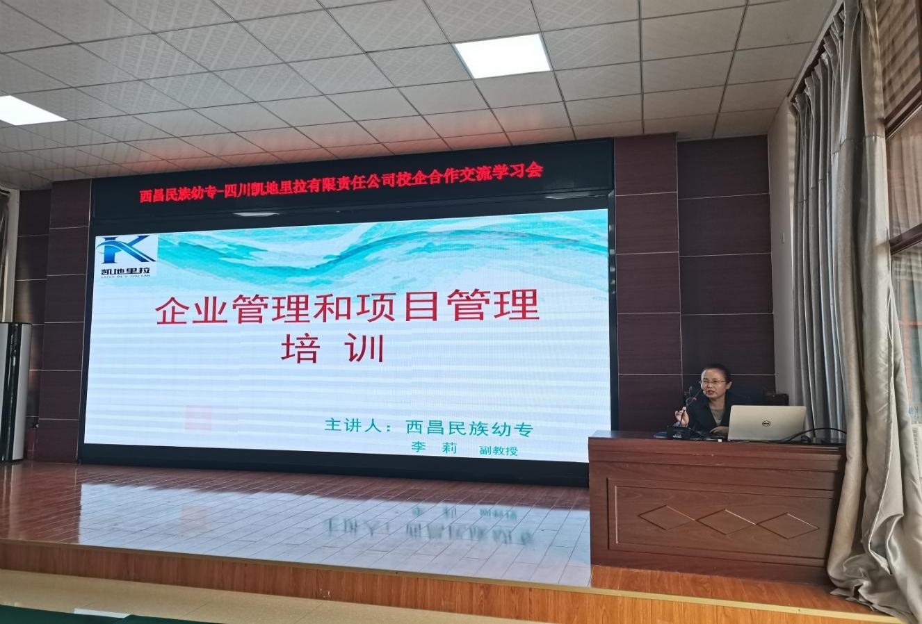 参会双方就推进和深化校企合作进行了洽谈并交流学习,了解企业需求和学校人才培养现状,探讨促进校企合作的方式方法,以期实现双方共赢;李莉副教授为凯地里拉中层管理人员进行企业管理及项目管理的专题培训,进一步奠定了校企合作的理论基础;职业教育系系主任曾艳向凯地里拉分管运营领导颁发了聘用证书,达到校企合作的实质化、规范化。