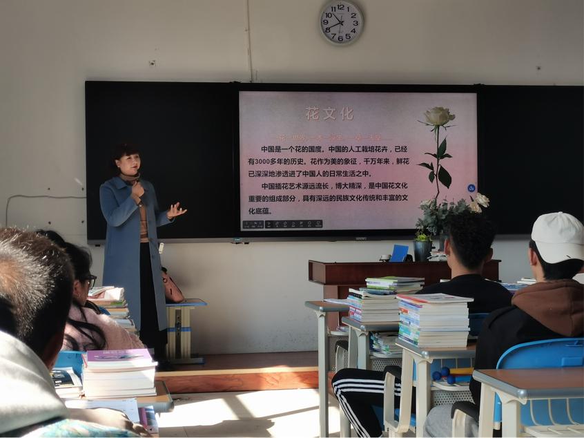 本课程专门聘请了西昌学院教师格坡铁支进行授课,整体课程理实结合,以花篮、桌花、手打花束、捧花等不同主题进行教学。