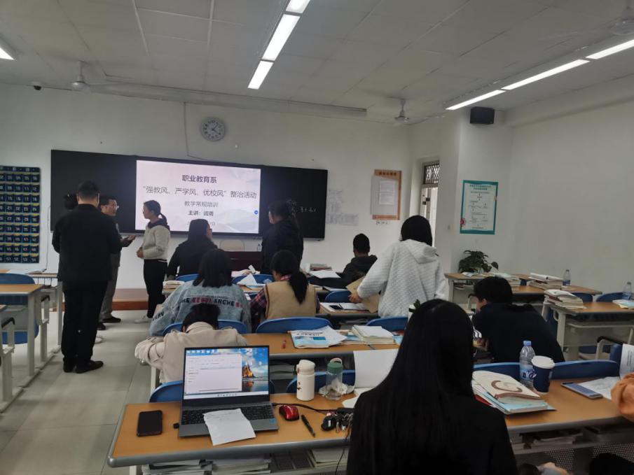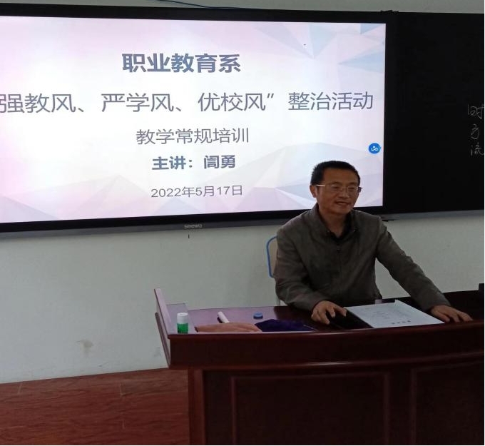 5月17日下午,职业教育系邀请迎评促建办公室訚勇教授为系部教师举行教学常规培训。訚勇教授向青年教师们详细讲解了备课的内容侧重、关于备课的实用方式方法、教案的规范格式等优质内容,帮助教师们梳理教学资料准备过程中的痛点和难点,并耐心与教师们进行一对一交流答疑解惑,协助我系教师进一步提升教学能力。