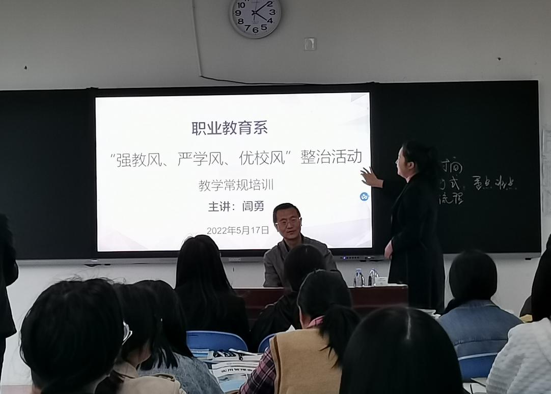 5月17日下午,职业教育系邀请迎评促建办公室訚勇教授为系部教师举行教学常规培训。訚勇教授就如何备好课、如何写好教案两个主题详细向我系教师进行了讲解,并耐心与教师们进行一对一交流答疑解惑,帮助教师们梳理准备教学资料过程中的痛点和难点,协助我系教师进一步提升教学能力。
