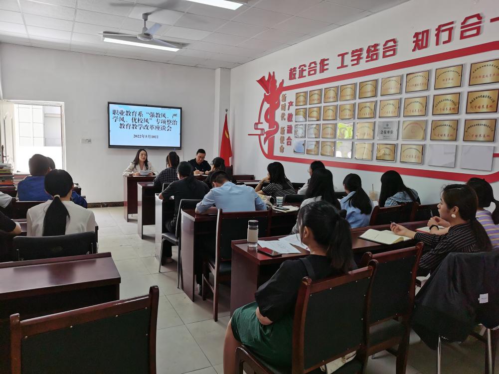 5月10日,职业教育系开展专项整治工作推进会,就我系在“强教风·严学风·优校风”中存在的问题进行梳理研讨。会议指出我系将严格执行学校对教学的相关管理规定并完善系部管理制度,加大教学常规管理,注重教学团队建设,从严治教,严肃教风。完善辅导员管理制度,进一步明确工作职责,加强班级教育管理,加大对教风学风的绩效考核力度。