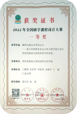 与此同时,丁麒霖小组则确定以阿坝州黑水县达谷冰川为研学方向,并且得到了指导老师的一致认可,虽然受疫情影响他们无法前往实地考察,但成员中有两名黑水县的藏族同学,为课程设计分享了很多生动并丰富的真实素材。此外,该小组通过网络及大量相关地理和研学的教材,搜集了许多参考资料,并在指导老师的指导下,不断完善课程方案,确定其可行性与安全性,最终设计出了具有地方特色的研学课程:“藏情为线 迈步厚雪达谷——基于阿坝黑水县达古冰川研学旅行设计”,并荣获一等奖。