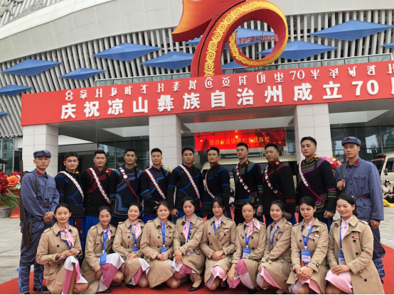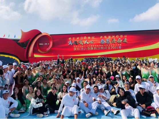 2022年11月4日至6日,凉山州建州70周年庆祝大会及系列活动在西昌隆重举行,凉山州17县(市)各族群众、社会各界代表、帮扶干部代表以及来自全国各地的嘉宾欢聚一堂,8000余名来自凉山州各县市的演员载歌载舞,用独特的歌舞表演庆祝盛会的召开。