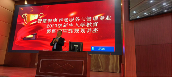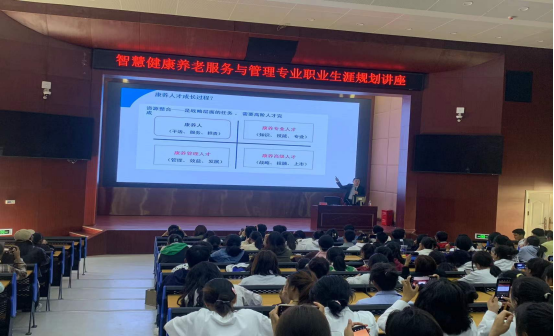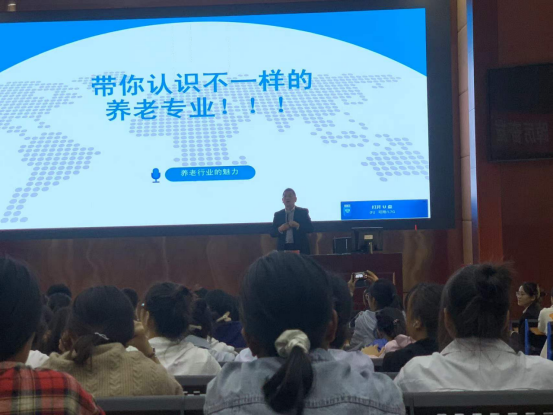 近年来,随着我国老龄化进程的加速,养老服务业得到了快速发展。为了培养更多具备专业知识和实践能力的养老服务人才,2023年我校智慧健康养老服务与管理专业招收了198名新生。为了让新生更好地了解养老服务行业的现状和未来发展趋势,提高他们的认知水平,2023年10月17日下午,陕西康源福祉教育科技有限公司左彤总经理应邀进校为他们开展了认知教育讲座。