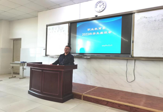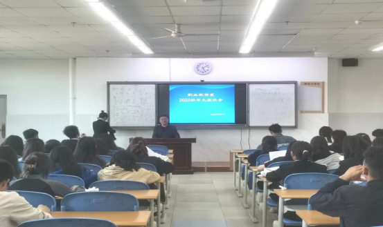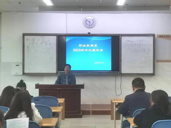 会上,秦毓志副主任首先介绍了职教系教学管理体系,要求同学们结合系部管理体系加强自我管理。他明确班助、班长、学习委员是辅导员的助手,直接参与班级管理及引导,学生会参与系部的学风建设和学生自我管理,希望同学们作为严以律己,为职业教育系的学风建设起带头作用。其次,秦毓志副主任对系部的学风、班风建设提出了要求,要求各班从出勤和课堂纪律入手加强学风建设。他鼓励同学们除了自我管理还要注重自我提升和自我价值的实现,要主动巩固强化理论知识,将理论结合实践,强化技能培养;积极参加校园活动,根据专业特点建立社团;提升专业认知,做好职业规划。最后,秦毓志副主任在班风建设上作了四点要求:一是为自己创造优美的学习环境,要求各班要加强环境卫生和健康管理;二是要为班级营造和谐的生活环境,要求各班要加强团结,互敬互助;三是为年级营造充满正能量的育人环境,要求各班要创造积极向上,维护正义的育人环境;四是为系部营造风清气正的发展环境,要求各班要注意意识形态引导和网络舆情管理。