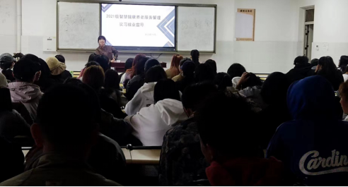 黎鑫老师娓娓道来,语言诙谐幽默,为21级智慧健康养老服务与管理专业的同学们详细介绍合作企业的具体情况,以及为同学们提供的各类岗位,帮助同学们深入了解行业动态和岗位职责,从而结合自身情况做出更优化的职业规划。
