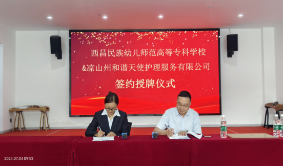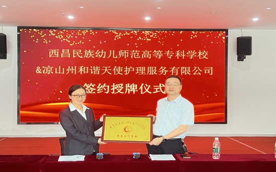 随后,我校与凉山和谐天使护理服务有限公司签订了校企合作协议,签约仪式上,双方就智慧健康养老服务与管理专业的课程设置、实践教学、师资培训、学生就业等方面达成了一系列合作协议。西昌民族幼专将依托和谐天使在养老产业中的丰富经验和资源,共同构建产学研用一体化的人才培养模式。
