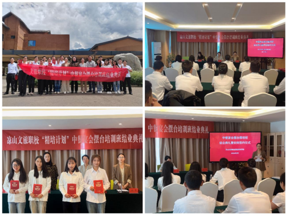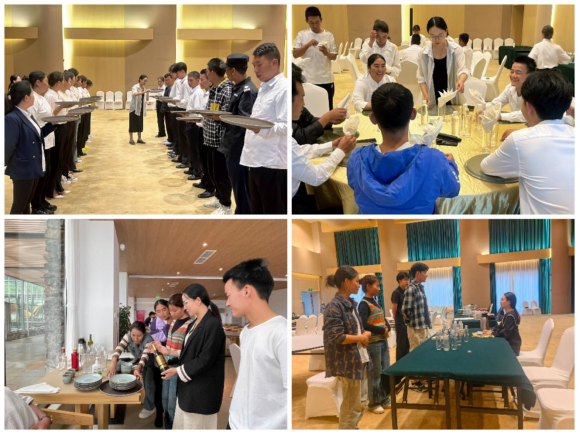近日,由盐源县人社局、盐源县就业创业中心办、凉山文旅职校承办的第三期“甬.凉促就业精培计划”中餐宴会摆台技能培训在盐源柏林湖苹果庄园酒店顺利结业。此次培训班共有来自盐源县15个乡镇的20名学员参加。凉山文旅职业技能培训学校特地邀请了我系旅游管理专任教师熊莲担任此次培训的导师。