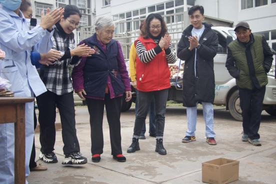 最后的抽奖环节,每位老年人都获得了一次抽奖机会,每个人都感受到了节日的温暖和养老学子们的心意。奖品丰富多样,从实用的生活用品到精美的纪念品,每一份都承载着师生们对老人的深深祝福。随着一个个奖项的揭晓,老人们的脸上绽放出幸福的笑容,整个小区沉浸在一片温馨与和谐之中。