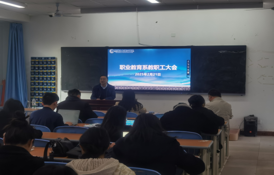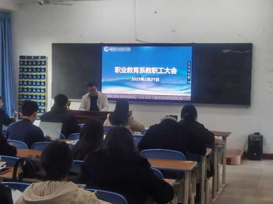 2025年2月20日-21日,我系分别召开班子党政联席会、中层行政工作会和全体教职工大会,会议对2024-2025年春季学期的发展提出了新的要求。其中,对全年工作提出四“向”发展方针,争创辉煌职教的努力目标。