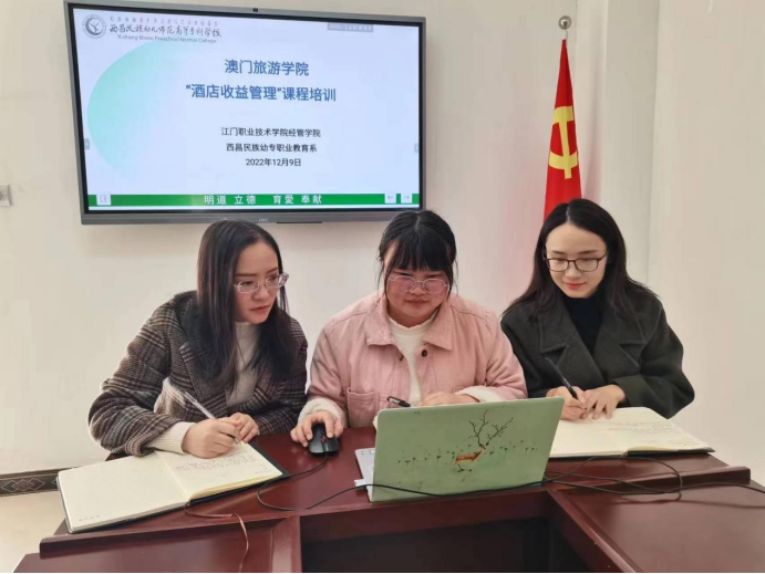 2022年12月9日,西昌民族幼专对口支援学校江门职业技术学院特地邀请澳门旅游学院酒店收益方面的专家陈卓华老师为我们讲解酒店收益管理课程,旅游管理教研室徐婷婷、谭月萍、熊莲参加了此次酒店收益管理的线上培训。
