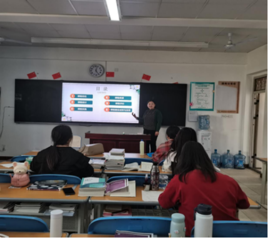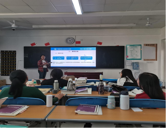 1.毛云艺老师说《景区服务与管理》课程,从课程定位、课程设计、课程资源、课程实施等方面说课。 教研室修改意见 徐婷婷:说课PPT中存在一些标点格式错误,全篇格式要一致,比如书名号后不再添加顿号,字体不宜太大等。其次课程设计思路要与专业人培方案中的培养目标相契合,课程的不足应该更聚焦在专业教学资源及教学技能上。最后,说课过程中要注意书面语的表达,不能照着PPT陈述全文,图片选择要从正规渠道,不能自己拍照。 熊莲:PPT内容呈现文字过多,可多通过图片、表格等使内容清晰化。课程内容的呈现较杂乱,着重介绍课程讲解的课时安排及原因即可。课程资源陈述中存在一些表述问题要更改。 谭月萍:选用教材的原因不用逐一排列,选取关键字,进行口头讲述更好。课程评价构成存在一定问题,分数构成的比列要再进一步斟酌。教学重难点应聚焦于本门课程的教学重难点,而不是教学单元的重难点。 罗芸:说课模板需要更新,教学团队中的成员需要更改表述方式。教学成效可联系学生就业展开,教学反思的阐述应从专业培养目标出发,长远分析课程的不足。 2.罗芸老师展开《大学语文》课程说课 教研室修改建议:及时更新说课模板,适当调整课程内容。