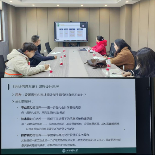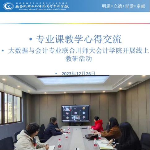 根据协同提质计划,2023年12月26日,在行政楼1510会议室,川师大商学院会计系联合西昌民族幼专大数据与会计专业开展线上教研活动,两个教研室通过腾讯会议开展了三门专业课的教学经验分享。