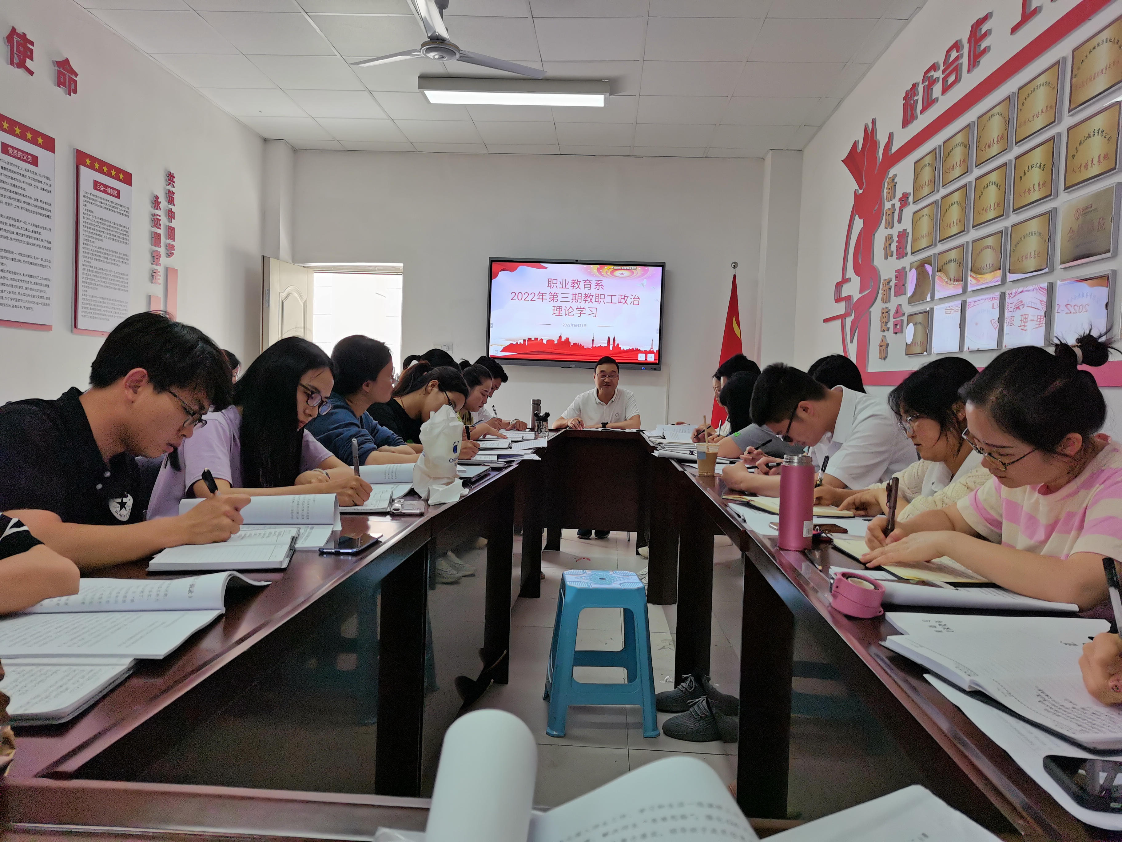 为贯彻落实学校党委工作部署,结合时事政治和工作实际,筑牢教职工的政治理论根基,提高教职工的思想政治水平,我系于2022年6月21日14:30在3215会议室召开2022年第3期教职工政治理论学习会。会议由职业教育系党支部书记、副主任李刚主持,系主任曾艳以及全体教职工参加学习会。