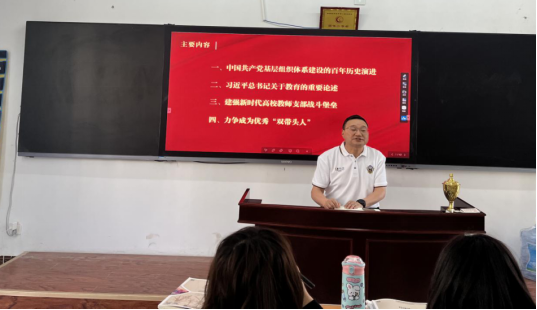 本次党课主题为《建强新时代高校教师支部战斗堡垒》,职业教育系党支部李刚书记以"中国共产党基层组织体系建设的百年历史演进,无数的先辈党员抱此初心用汗水、鲜血甚至生命践行了初心诺言”的英雄人物举例,诠释了历史长河中太多太多优秀的党员烈士坚守初心,追求始终的高大形象。 并从基层党组织体系建设的萌芽阶段、基层党组织体系建设的初步发展阶段、基层党组织体系建设恢复和发展阶段、基层党组织体系建设步入高质量发展阶段进行了系统地讲解,要求所有党员高度强调政治建设,提升组织力,系统构建法规体系,加强规范化,推进组织全面覆盖,实现功能性。要做好先锋模范带头作用,从自身做起,从身边的小事做起。