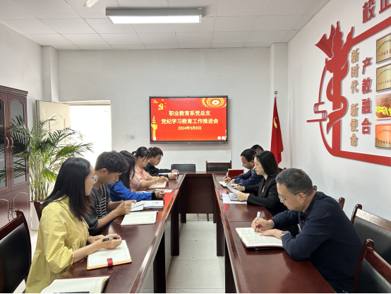 为深入学习贯彻习近平总书记关于党纪学习教育的重要讲话和重要指示精神,传达贯彻中央和省、州、学校党委有关党纪学习教育会议精神,推动职业教育系党纪学习教育工作,促进党纪学习教育学深学实,职业教育系党总支于5月8日上午,召开党纪学习教育工作推进会。会议由职业教育系党总支书记曾艳主持,职业教育系党总支支委、职业教育系教师党支部支委、职业教育系学生党支部支委全体成员参加。