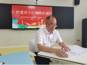 2024年7月3日,为进一步加强学校党员干部的纪律教育。学校党委委员、副校长王晓东同志以“把遵规守纪刻印在心”为主题,为职教系教师党支部全体上了一堂生动而深刻的党课。