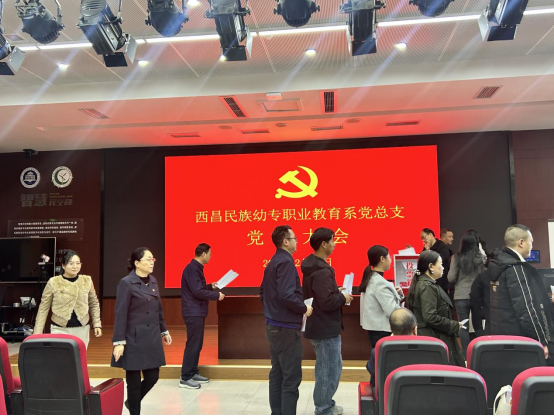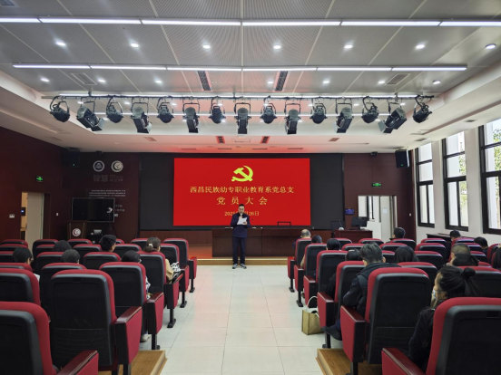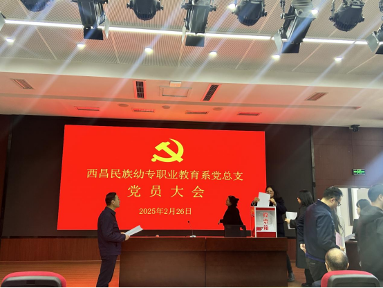 2025年2月26日,西昌民族幼专职业教育系党总支党员大会在学校图书馆学术报告厅举行。会议由职业教育系党总支副书记李刚同志主持。会议首先宣读学校党委关于调整职业教育系党总支委员的批复和王寒同志免职通知。