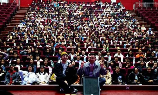 学校特邀毕业于英国卡迪夫大学国际公共关系的辛玄烨硕士和清华大学美术学院的毛晨程学士,在学校雏鹰剧院为大一新生开展讲座活动。