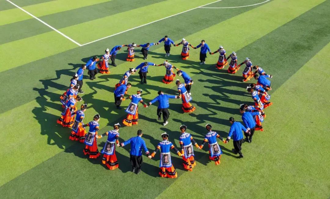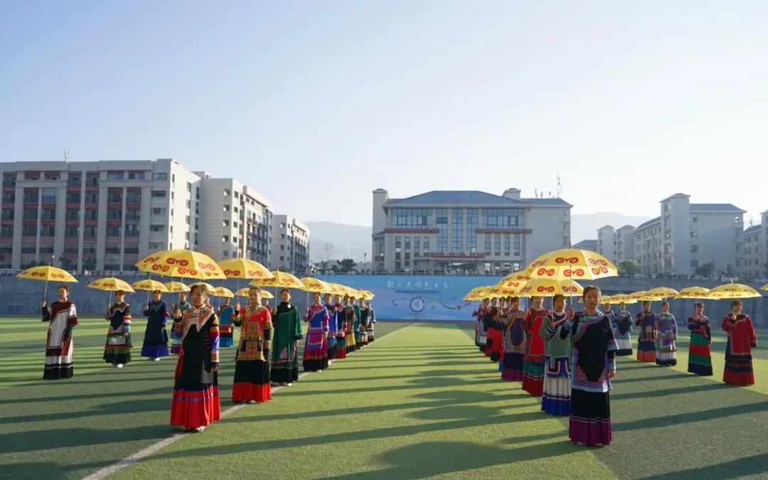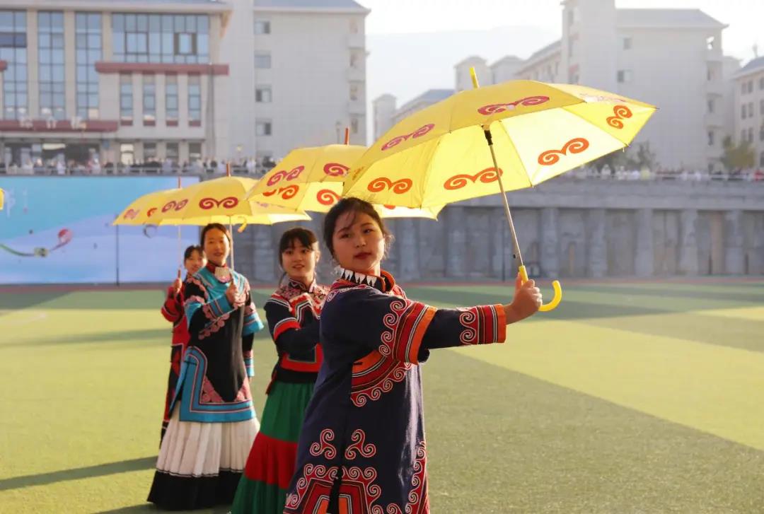 薪火相传,力不知火尽,青年有梦,应肆意追寻,一首《朵洛荷》以青春之风采献礼西幼。彝族少女身穿民族服装在操场上翩然起舞,油纸伞在暖阳的映照下,折射出一个个曼妙的身姿,少男少女奔跑在音乐声中尽显青葱活力。