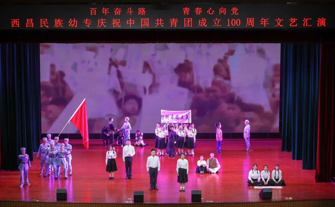 山河共庆,江山颂歌。一个个精彩的节目,歌颂了中国共产主义青年团一百年来取得的辉煌成就,抒发了西幼师生对中国共产主义青年团的深情礼赞。