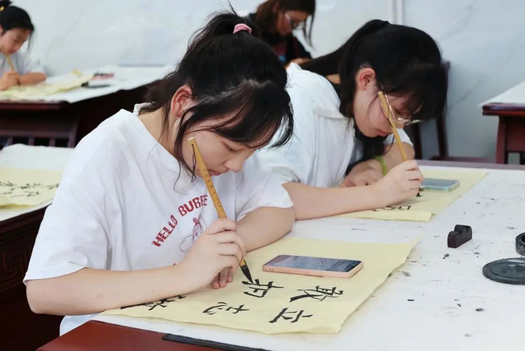 比赛中,各位选手满怀激情,用心书写每一个字、每一笔笔画。方寸砚台之中,自有万丈波澜。提笔即是清,落笔皆有意,尽情展示自己。
