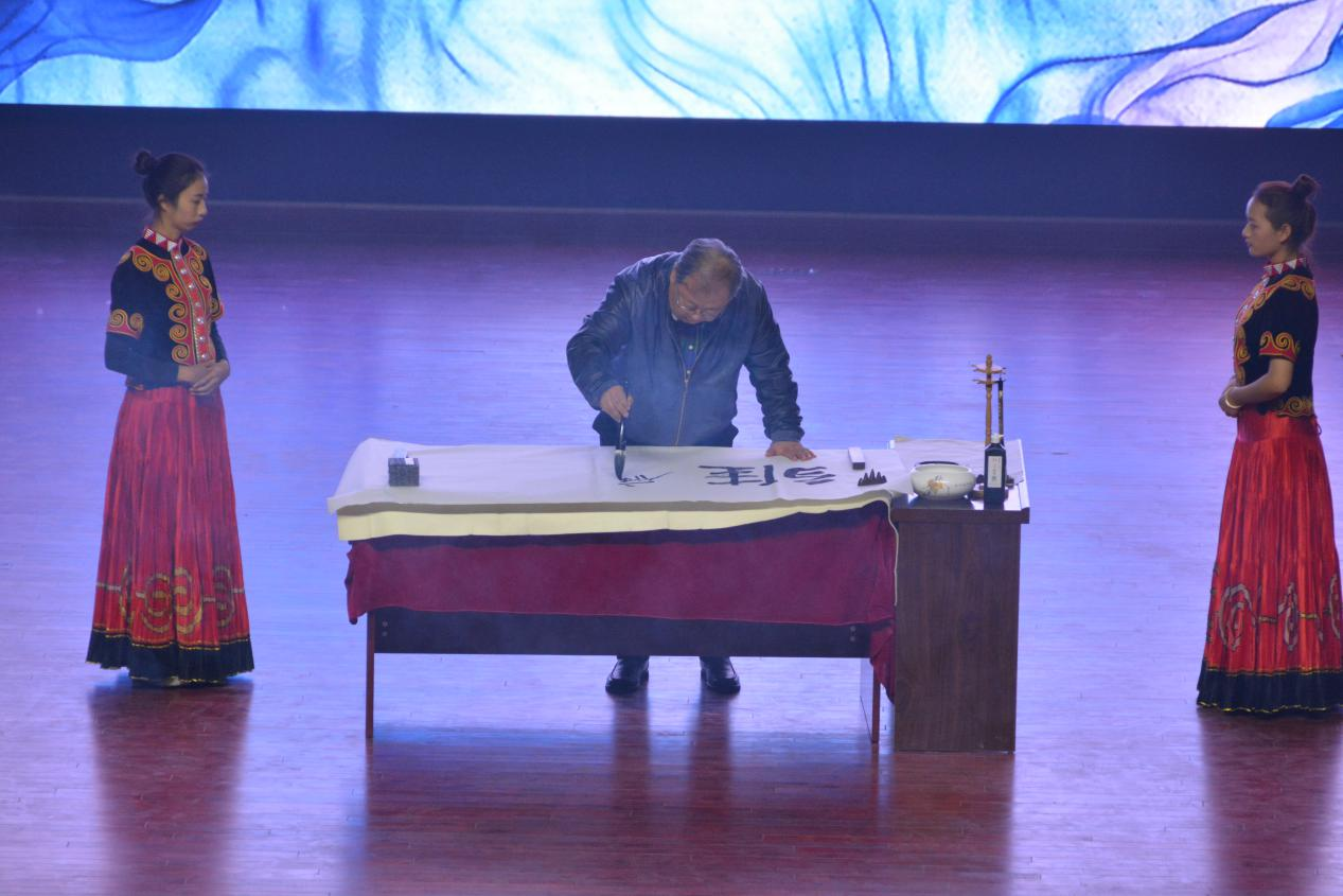 其间,吉狄马加先生为学校演艺中心题名“雏鹰剧院”。"雏鹰剧院"愿景美好,意寓着在学校摇篮里,一只只雏鹰经过三年的学习、磨砺,羽翼丰满,展翅高飞;意寓着学校事业蓬勃发展,为凉山基础教育培养更多优秀的人才。