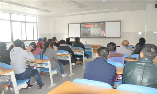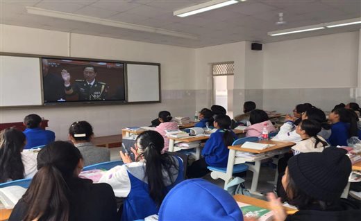 学校各部门工作人员和教师集中收听收看庆祝大会。