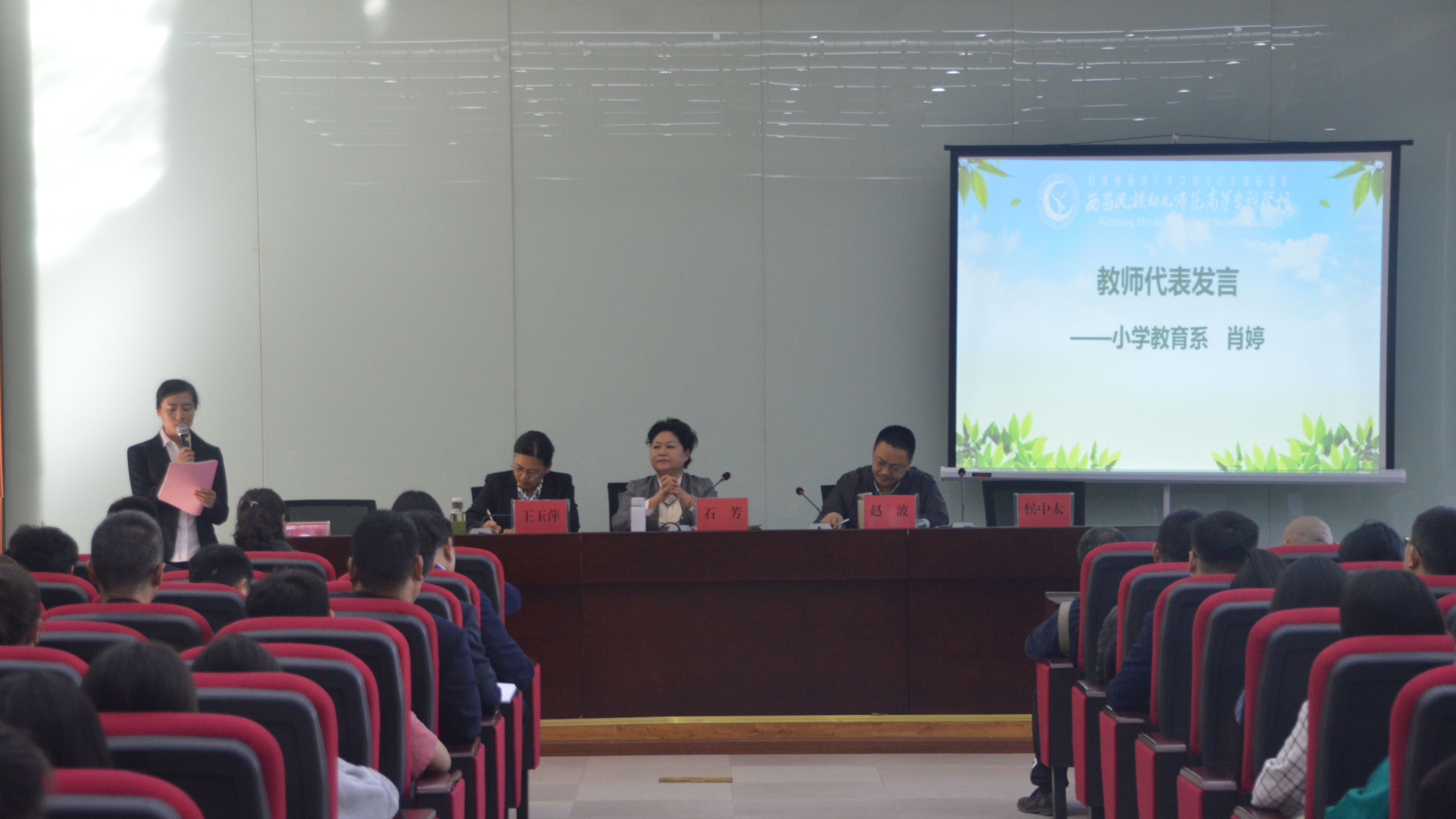 小学教育系肖婷作为教师代表发言表示:一个文明的老师能够把文明传递给一群学生,一群文明的学生能够组建一个文明的班级,一个文明的班级能够将文明传满校园,一个文明的校园,定能成为名扬一方的育人摇篮。