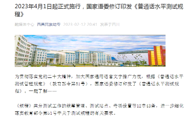 2023年4月1日起正式施行,国家语委修订印发《普通话水平测试规程》