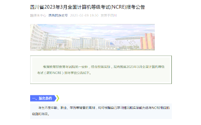 四川省2023年3月全国计算机等级考试(NCRE)报考公告