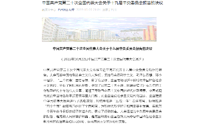 中国共产党第二十次全国代表大会关于十九届中央委员会报告的决议
