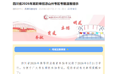 四川省2026年高职单招凉山州考区考前温馨提示