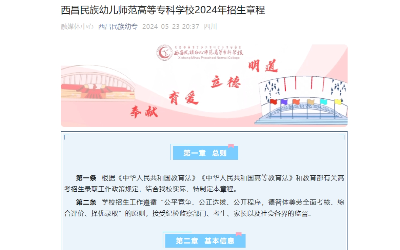 西昌民族幼儿师范高等专科学校2024年招生章程