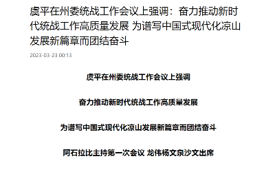 虞平在州委统战工作会议上强调:奋力推动新时代统战工作高质量发展 为谱写中国式现代化凉山发展新篇章而团结奋斗