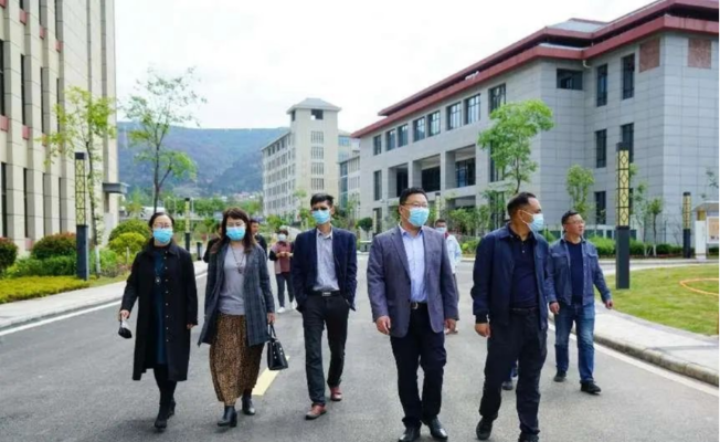 近日,四川应用技术职业学院校长蔡兵、副校长薛文莲一行到我校调研。党委委员、副校长马辉,后勤处相关人员陪同调研。