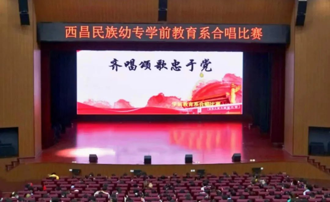 4月19日下午,学前教育系以“齐唱颂歌忠于党”为主题的合唱预赛在雏鹰剧院举行。学前教育系全体师生共同参与此次活动。