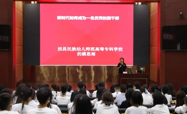 近日,我校的嫫思雨老师以《新时代如何成为一名优秀的团干部》为题,在学术报告A厅开启了西昌民族幼专2021-2022学年下期的第一期团课宣讲,241名团干部参加活动。