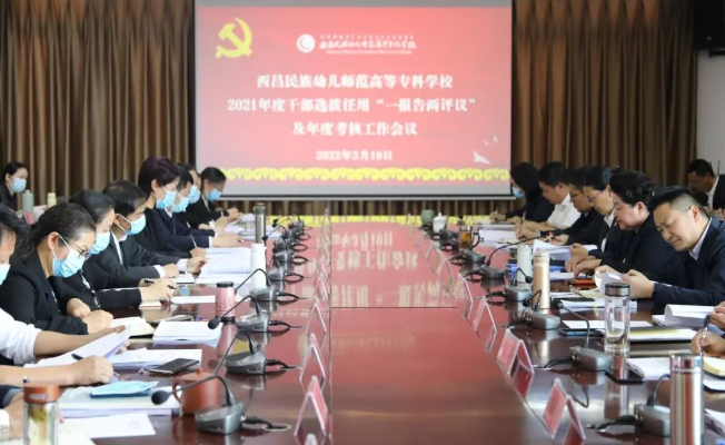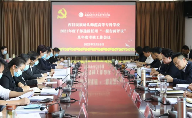 按照省委教育工委、州委组织部有关干部选拔任用“一报告两评议”工作相关要求,3月10日,我校召开2021年度干部选拔任用“一报告两评议”工作会议。